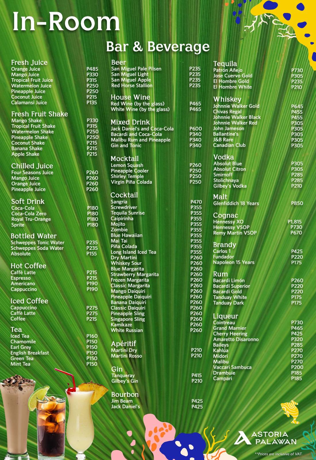 *In-room service will incur a 10% surcharge on top of the regular rates above.